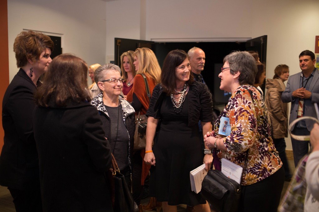 - Heartland Film volunteers Donna Quiring, Carolyn Goebel and Claudia Dille chat following the screening